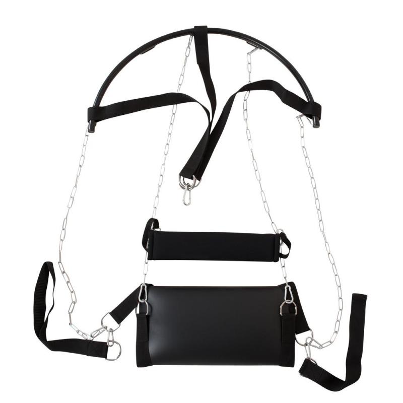 Dondolate verso il culmine!Altalena d'amore nera con sedile, schienale e cosciali removibili. Adatto alla pecorina e alla posizione missionaria. Caricabile fino a 100 kg. Nessun accessorio per il montaggio.Piano di seduta ca. 53 x 28 x 5 cm, schienale 43 x 10 cm. PP, PU, poliestere (schienale), metallo (catena cromata, maglie zincate, telaio verniciato a polvere).Destinatario :