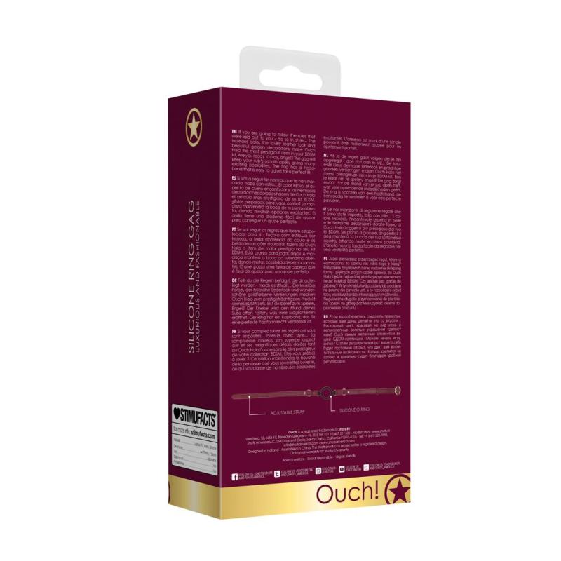 If you are going to follow the rules that were laid out to you - do so in style The luxurious color, the lovely leather look and beautiful golden decorations make Ouch Halo the most prestigious item in your BDSM kit. Are you ready to play, angel? The gag will keep your sub's mouth open, giving many exciting possibilities. The ring has a headband that is easy to adjust for a perfect fit. Enjo ...Destinatario :