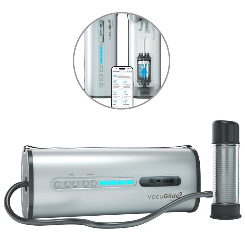 The VacuGlide 2 can now be controlled via an app and synchronised with videos! It offers access to over 1000 free VR videos ? conveniently via a smartphone, tablet or laptop. In addition to that, the VacuGlide 2 can access a range of web-enabled features free of charge ? such as remote control, downloadable blowjob experiences, custom autopilot modes, an AI companion for chatting and control, 20 built-in speeds and new handjob/blowjob modes (from extremely slow caresses to top turbo speed).