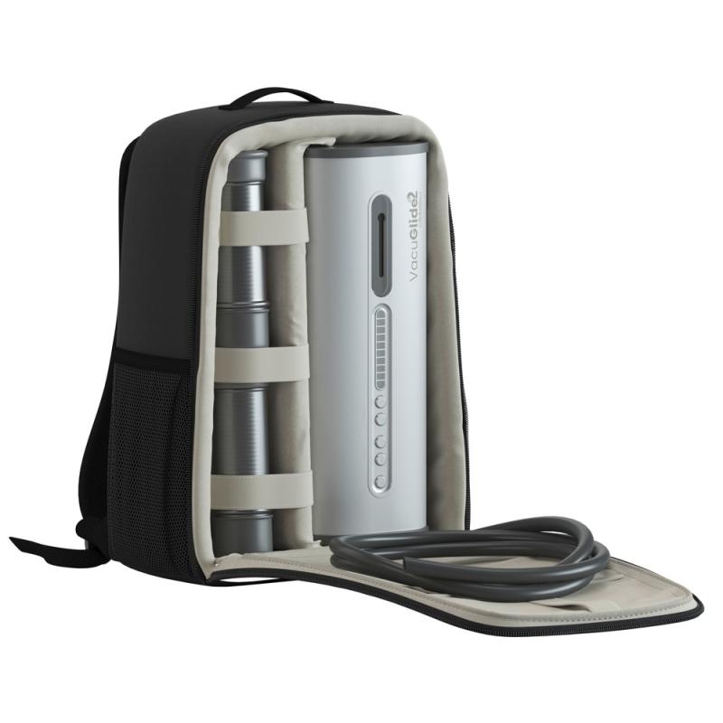 3 cylinders and silicone sleeves in different sizes are included. They can be swapped easily. There is therefore a perfect size for every penis! A discreet storage backpack is also included.