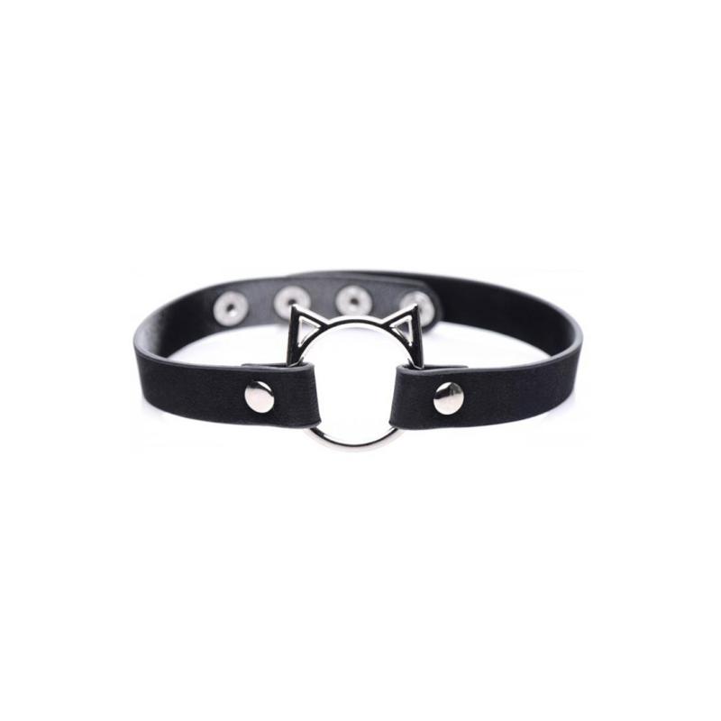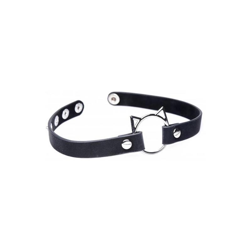 Kinky Kitty Ring Slim Choker - PU Leather - Black
