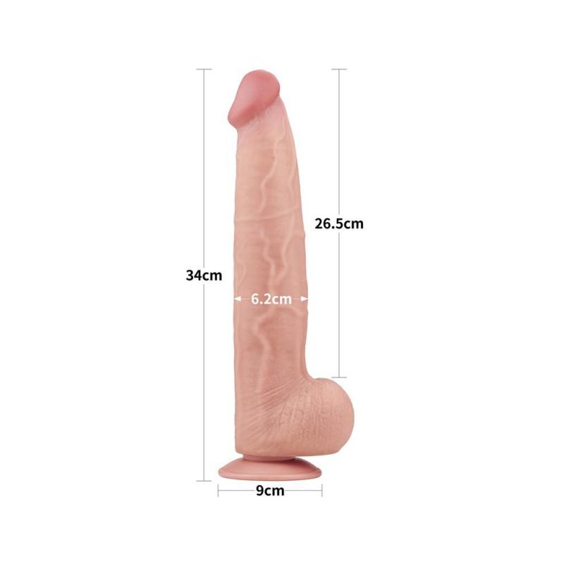 Lovetoy - dildo pelle scorrevole 34 cm - nudo. Questo dildo pelle scorrevole realizzato con materiale di pelle scorrevole a doppio strato realistico per l atmosfera realistica. Una speciale tecnologia a doppia densitviene utilizzata per simulare la sensazione di un pene eretto e l utente pugodere di una pelle esterna morbida e un centro soddisfacentemente fermo. Questo dildo realistico ...Destinatario :