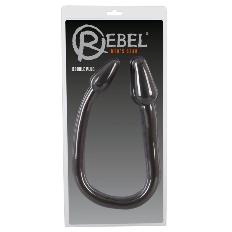 Dildo doppio estremamente flessibile di Rebel con una spina ad ogni estremit Per il gioco in solitaria, inserisci vaginalmente e analmente allo stesso tempo; per i giochi a due, ognuno di voi si concede uno dei plugs. Superficie meravigliosamente setosa e scivolosa. Nero.