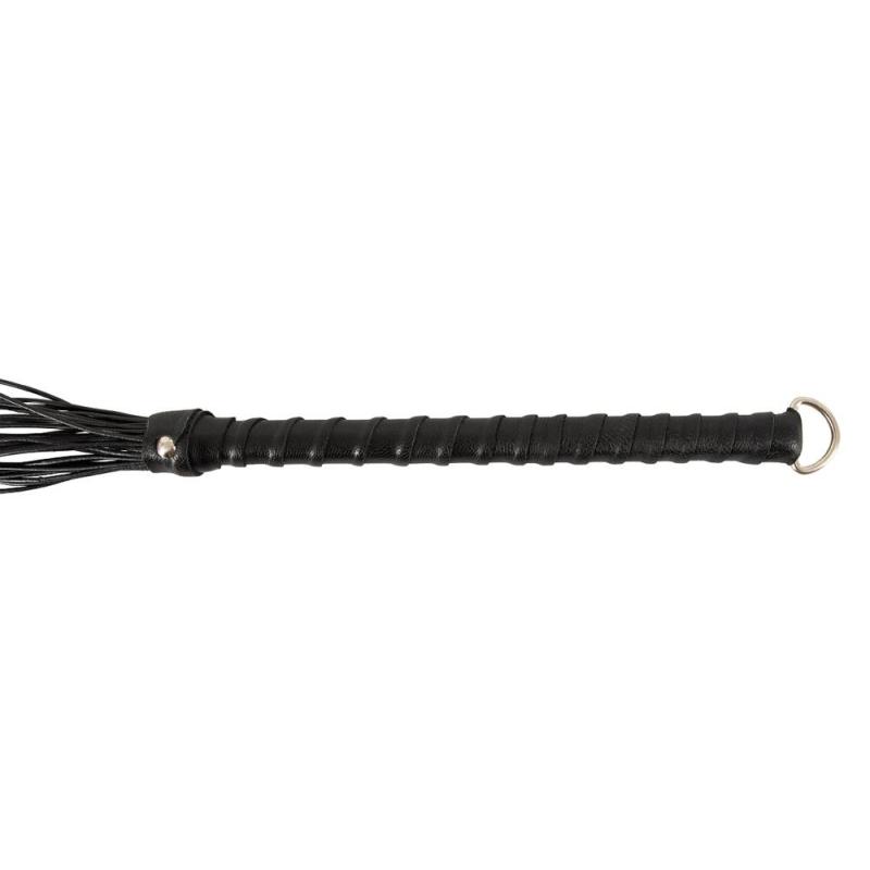 Elegante flogger in pelle di ZADO dal design robusto. Le innumerevoli cinghie di cuoio rotonde e strette con estremitappuntite non perdono il loro intenso effetto d'impatto. La frusta di alta qualitfatta interamente di pelle e sta bene e in equilibrio nella mano con il suo manico avvolto. L'estremitdel manico ha un pratico anello per appendere.