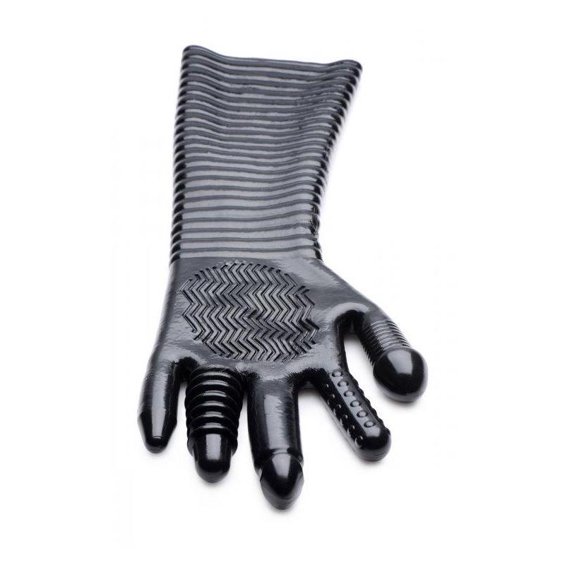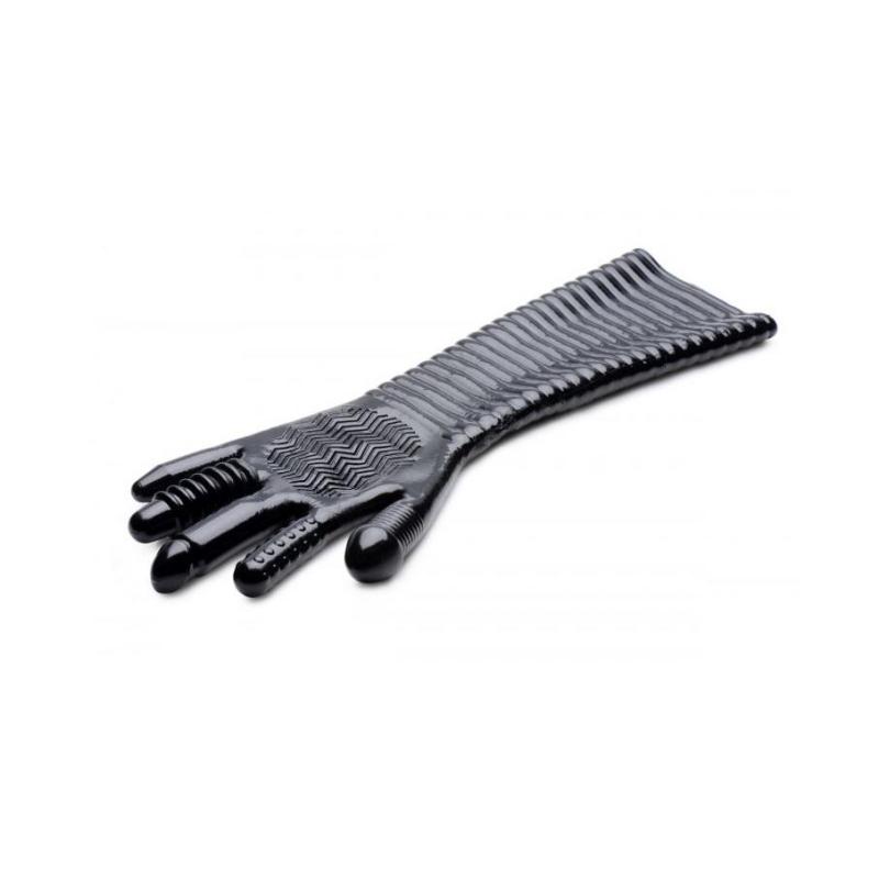 Dai una trama della tua mano durante il gioco di fisting! Questo lungo guanto cosversatile che pudiventare un punto fermo in tutte le tue esperienze sessuali! Costanti modi per usare a parte la penetrazione a pugno ... massaggio con corsa delle dita o sculacciata. Che tu sia maschio o femmina che gioca da solo o con un partner questo guanto ti mostreramore! Ognuna delle cinque dita ha modellato in modo univoco per una serie di sensazioni durante l inserimento anale o vaginale: movimenti lisci e affusolati in grassetto a forma di pene o bulbeti con sottili costole. Il palmo ha un battistrada a zig-zag che porta ulteriore eccitazione a una sega o una masturbazione e l intero avambraccio viene bloccato senza intoppi per una stimolazione aggiuntiva mentre spingi piin profonditall interno! Questo guanto a doppia faccia funziona su entrambe le mani ed compatibile con lubrificanti a base di silicone e acqua. Pulire con sapone e acqua delicata. Misurazioni: 15,5 pollici di lunghezza 1 pollice a diametro pilargo non stretto