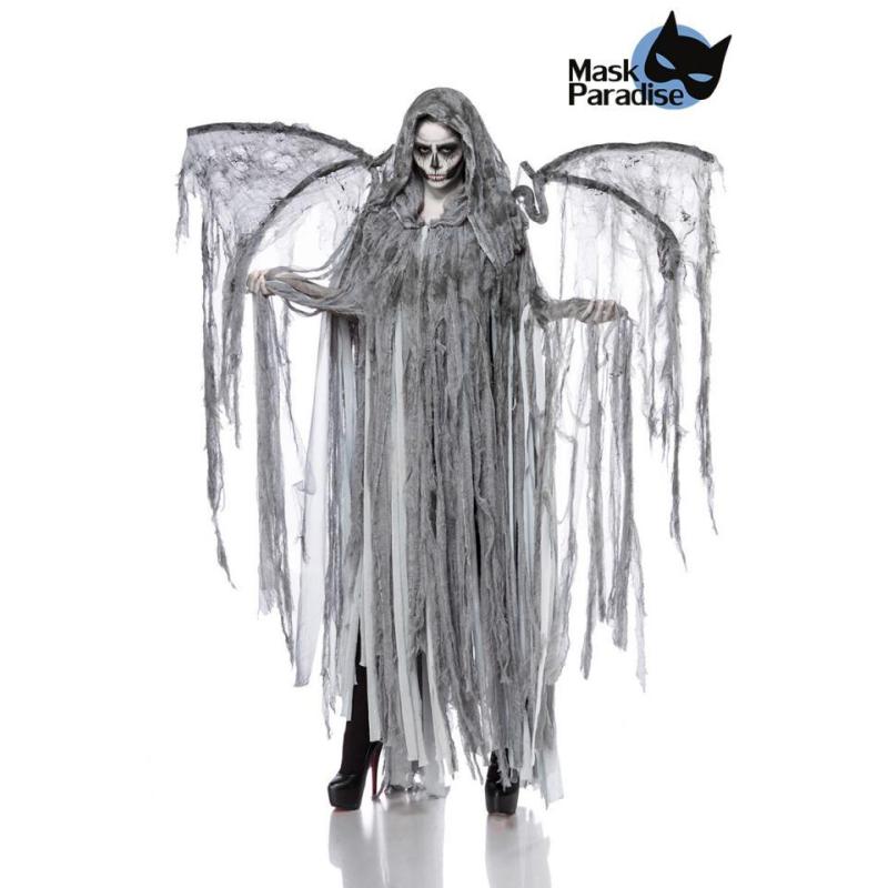 Costume da Angelo della Mortemantella lunga fino al pavimento con cappuccio in cotone consumato a righe alette in filo sagomato e strisce di cotone bande elastiche per una vestibilit comoda elevata stabilit grazie a una struttura in metallo ricoperta di schiuma per un buon comfort confezione per il consumatore finale con immagine del prodotto standard MASK PARADISE di alta qualitDestinatario :