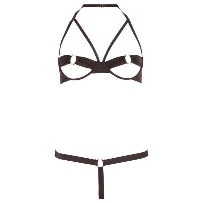 Pura seduzione!Questo set non lascia nessuna fantasia insoddisfatta! Il reggiseno con ferretto colpisce per le coppe completamente aperte e per gli anelli metallici a ferro di cavallo sui capezzoli. Con una pratica chiusura a gancio sul retro, il collo a mezzaluna alla moda puessere aperto comodamente con una chiusura a clip. Da non disprezzare anche il perizoma appuntito con elastico in ...Destinatario :