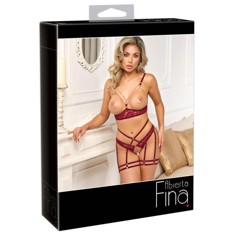 Eleganza estremamente erotica! L entusiasmante set di Abierta Fina contiene un reggiseno a tazza aperta e slip senza tute. Il delicato pizzo rosso scuro seducente enfatizzato dalle cinghie di velluto e dagli accessori color oro rosa. morbido e elastico per una vestibilitmolto comoda. Le catene decorative incorniciano il seno scoperto. Le 3 catene rimovibili sull area del cavallo aperto ...Destinatario :