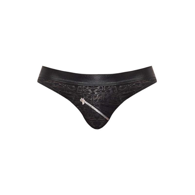 Zip Bikini features diagonal zippers on pouch and rear with protective flaps, contoured pouch, slimming wet look waistband. Semi Sheer burnout fabric with a tone on tone abstract pattern. Lightweight and breathable with all way stretch.Destinatario :