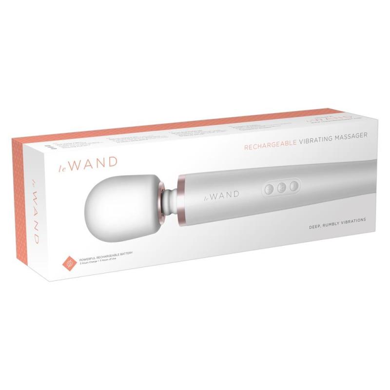 Bacchetta di massaggio ricaricabile le wall con grande testa di massaggio mobile in silicone. Offre momenti di coccole sensuali con 20 modalitdi vibrazione e 10 intensit Comodamente controllabile con la semplice pressione di un pulsante e con il pratico blocco dei pulsanti. Include un altro cappuccio testurizzato per il massaggio, una spina USB e una borsa per riporlo.