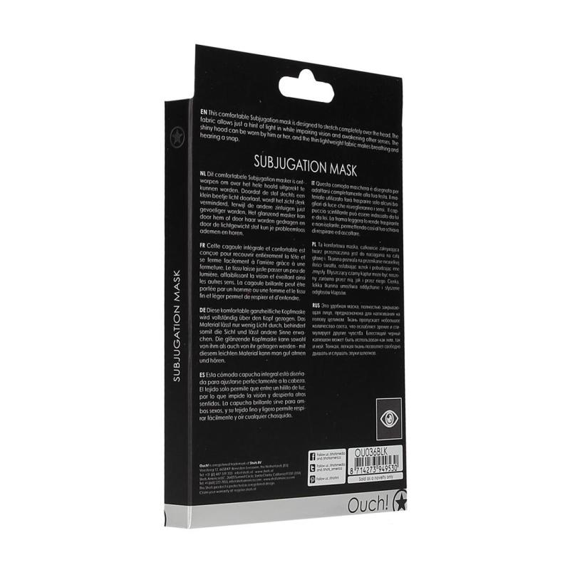 Questa comoda maschera di sottomissione progettata per allungarsi completamente sopra la testa e si chiude facilmente sul retro con una cerniera. Il tessuto lascia entrare solo un accenno di luce mentre compromette la vista e risveglia gli altri sensi. Il cappuccio lucido pu essere indossato da lui o da lei, e il tessuto leggero e sottile rende la respirazione e l'udito un gioco da ragazzi.Destinatario :