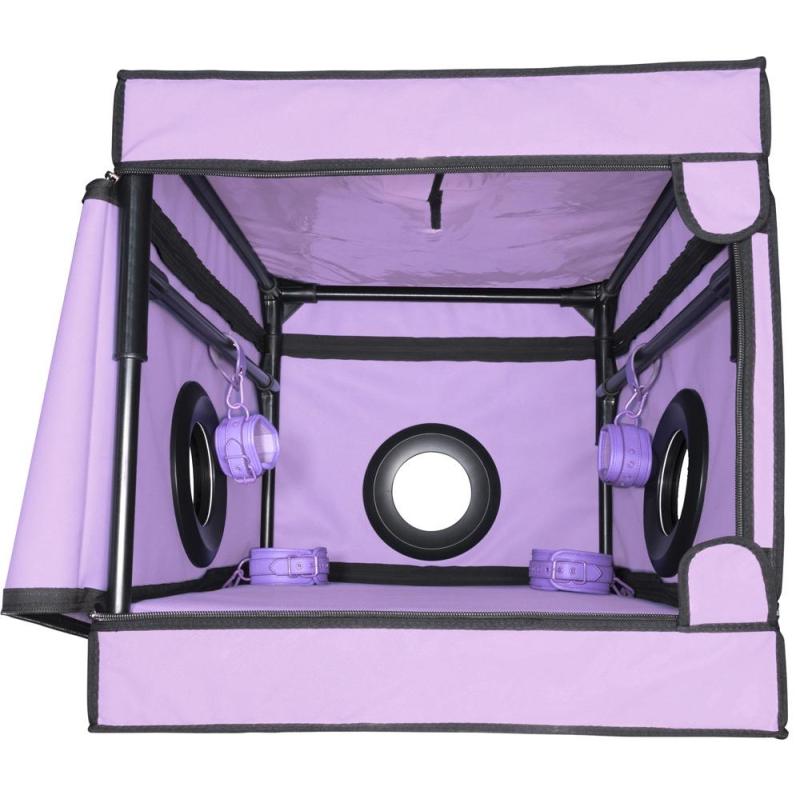 La scatola da gioco per gli intenditori! La scatola BDSM chiusa, La nicchia di Secret Dome, perfetta per Glory Hole Fun, Dark Games, accattivante gioco di ruolo e altre fantasie. La scatola robusta con il suo sistema di plug-in del tubo e il coperchio robusto puessere rapidamente assemblato e sarpronto per l uso in pochissimo tempo. Con 3 grandi buchi ai lati. Il foro per la testa ha una cerniera e un colletto ampio e regolabile. Fornisce inoltre un comodo accesso tramite la porta a zip. La luce a LED e un tappetino morbido garantiscono un grande comfort. Le manette incluse e i polsini alla caviglia (1 set di ciascuno) possono essere posizionati all interno come richiesto. Le tenute morbide imbottite possono essere messe e regolate rapidamente con i dispositivi di fissaggio della fibbia. Box (smontati), tappetino da pavimento, 1 paio di manette, 1 paio di polsini alla caviglia, 1 luce a LED tutto presente nella pratica di viaggio di stoccaggio. Box (assemblato): larghezza 85 cm x altezza 60 cm x profondit60 cm. Peso 13,2 kg.pu, ABS, alluminio.