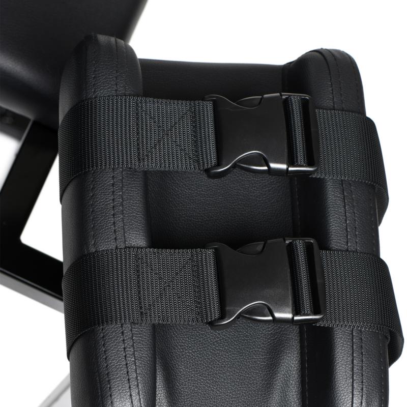 Lean back, put your legs up, and enjoy premium, kinky luxury with this Adjustable Bondage Chair. Now you can position yourself or your partner at the angle that works perfectly for your both. This chair has a heavy duty frame that can handle up to 440 lbs (199 kg). With an adjustable backboard, you can sit them upright so they can watch your administrations of pleasure and pain or lay them back so their body relaxes and stretches out, their chest and belly exposed for teasing, sensation play and affectionate touch. Their leg height can also be adjusted so for their comfort, as well have their legs up high or lower them a bit if that works better. The whole chair is adjustable both for your comfort and theirs! As they sink into the plush, foam cushions covered with PVC leather, they'll be able to handle longer scenes and their body will have some padding to push into as you play with them roughly or deliver strong thrusts! To keep them in place, there are straps with ABS plastic buckles that easily secure their legs and chest. Whether it's to keep them safely bound or to keep them from writhing too much in pain or pleasure, these adjustable straps are easy to take on and off for quick changes. On the sides of the board as D-rings for wrist cuffs or other bondage accessories to clip to, as well! It's up to you how you'd like to play! Ask your partner to climb up into the chair and try it out. Adjust the leg height and the chair backboard angle for the, and adjust any other positions and heights for yourself, as well. Once you've got the settings out of the way, bind them with the straps and buckle them in. Tease and torment them with pleasure and pain while they writhe in agony and ecstasy! Use floggers, nipple clamps, ticklers, vibrators and more while they're bound and secured, ready to receive. If you're solo and want to enjoy it yourself, strap yourself in and enjoy the support that the leg boards offer so you can really enjoy being spread wide as you play with yourself in your sexy bondage chair! Take it up a notch and combine this with the Dicktator Extreme Sex Machine and get pounded while your on your throne! To clean the chair after use, spray with a toy cleaner and use a soft cloth to wipe it clean. Avoid exposure to sunlight and heat to preserve the PVC faux leather material longer. Measurements: Overall: Length 40 inches x Width 21.5 inches x Height 57 inches Torso pad: 31 inches Long x 9.5 inches Wide Seat pad: 22 inches Long x 9.5 inches Wide Leg rests: 11 inches Long x 8 inches Wide Max weight limit 440 lbs Materials: Iron, wood, foam, PVC leather, nylon, ABS plastic Color: Black Key Features: Adjustable Back Rest: Sit up or lean back with this adjustable back rest. Strap your partner in and move them up or down for the perfect angle! Plush, Comfortable Pads: Perfect for long sessions, these plush pads are super comfortable and cushion against hard thrusting or movement. Heavy Duty Frame: Get a frame that can handle rough play! This heavy duty frame is made of metal and wood so it holds up as a durable piece of furniture. Quick Release Buckles: The ABS plastic buckles are easy to release for when you partner needs to sit up, readjust, or pause the scene. D-Rings to Attach Bondage Accessories: Attach wrist cuffs or other bondage accessories to the D-rings to add another element to your play! Compatible with the Dicktator Extreme Sex Machine: While this item is not included in purchase, this chair is perfectly paired with this satisfying sex machine!