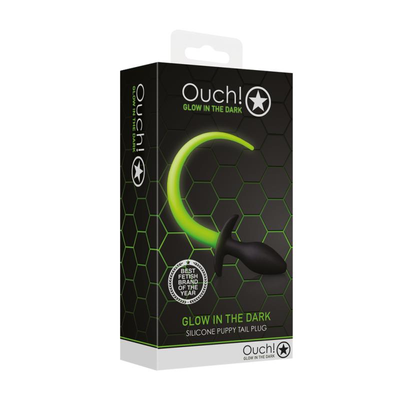 Ouch! Glow in the Dark, the future of bondage is here. Designed with an authentic bondage aesthetic, but with the added delight of the glow-in-the-dark properties, the fluorescent green detailing will turn every event into a part. With Ouch! Glow in the Dark, the fun is just beginning when the lights go out. Show off your playful side with this puppy tail! The tail is inserted anally. Wear th ...Destinatario :