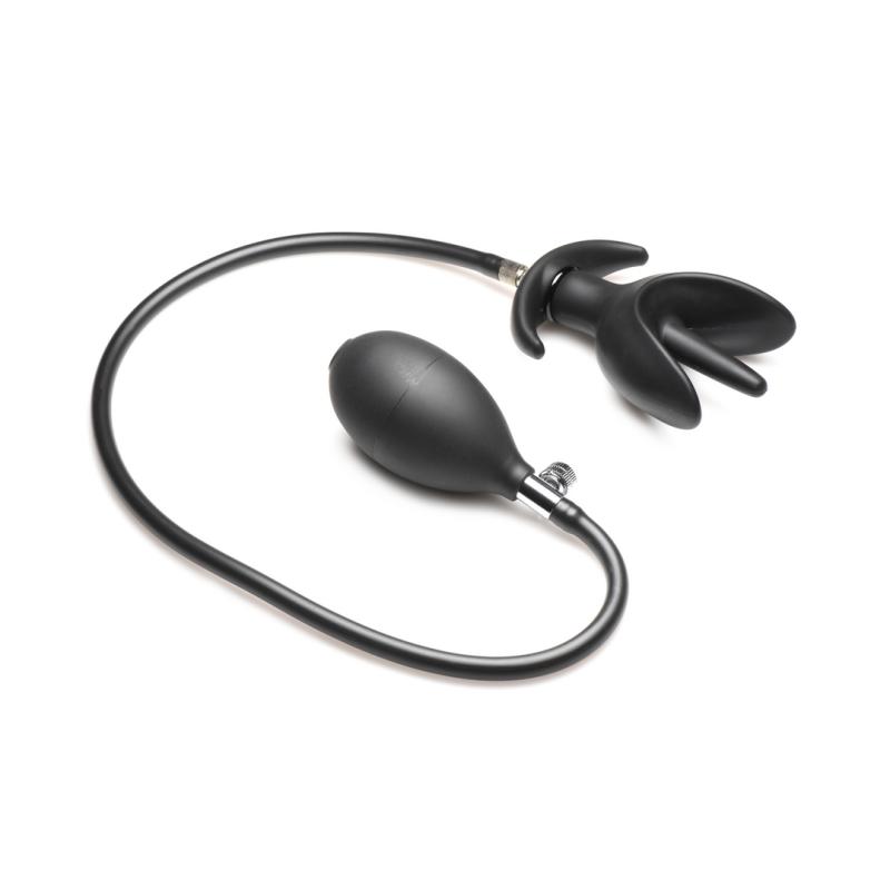 Get ready to turn the pressure up with this inflatable anchor anal plug! The smoothm, soft silicone has a tapered tip in the center and curved, round sides to the anchor for easier insertion. Anal enthusiasts of all levels will enjoy how the 3.2 inch long and 1.8 inch wide plug expands to 5 inches long and 5.5 inches wide! The intense pressure build up from within will press against the internal sphincter as the flanged base keeps the plug anchored in place. After using the soft, silicone bulb to pump up the plug to your chosen degree of inflation, you can remove the hose and the plug will stay inflated! Enjoy the feeling of being filled up to your limit! Once you've got the plug inside, use the bulb to pump up the plug. As it inflates, take your time and go slow. The hose has a built-in quick-release valve that lets you control pressure decrease you can choose to deflate fast or slow! Use plenty of water-based lube on the premium silicone plug and enjoy how it presses against the sensitive nerves and erogenous zones inside you. Pressure may build and push against the A-spot or P-spot giving you even more extreme pleasure as you play with yourself or a partner! After you're done, deflate the toy and carefully remove it. After cleaning yourself up as much as you like, washt the toy with warm water and mild soap, then spray it with a toy cleaner and let it air-dry. Measurements: Overall length: 27.25 inches. Deflated: 3.2 inches insertable length, 1.8 inches widest insertable diameter. Inflated: 5 inches insertable length, 5.5 inches widest insertable diameter. Materials: Plug: Silicone Hose bulb: PVC, metal Color: Black Note: Use only with water-based lubricants. Wash after each use. Key Features: Inflatable Silicone Plug: This anchor-shaped anal plug can be pushed inside while less than 2 inches in diameter and 3 inches long and then inflated to approximately 5 inches deep by 5.5 inches wide! Removable Hose: The plug can stay in place and inflated even after the hose is removed. Tapered Tip: The tapered tip and smooth, round sides of the anchor make insertion easier. Quick Release: The inflatable plug comes with a pump that has a sofft bulb for easy pumping and a quick release valve that lets you control the speed and release pressure fast or slow. Soft Silicone: Made out of soft, smooth, premium silicone.