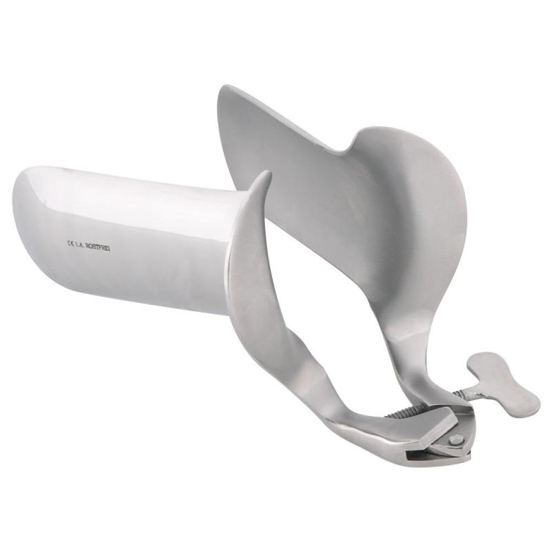 Lo speculum solido e stabile di fetish collection realizzato in acciaio inossidabile (lucido all'esterno e opaco all'interno) e si apre e si allarga per mezzo di una vite di regolazione laterale.
