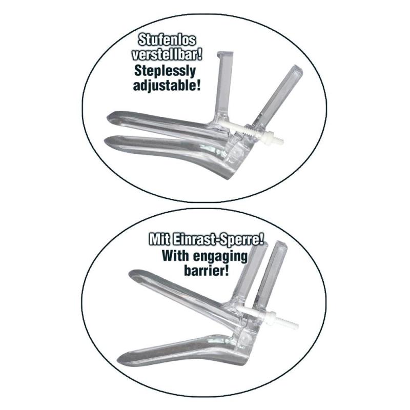 Per eccitanti giochi da dottore con viste molto profondi nel centro del piacere della paziente! Speculum vaginale con becco dilatatore lungo 10 cm, regolabile e blocco. Dilatabile fino a massimo 12 cm. Monouso raccomandato.Trasparente. Materiale: ABS.Destinatario :
