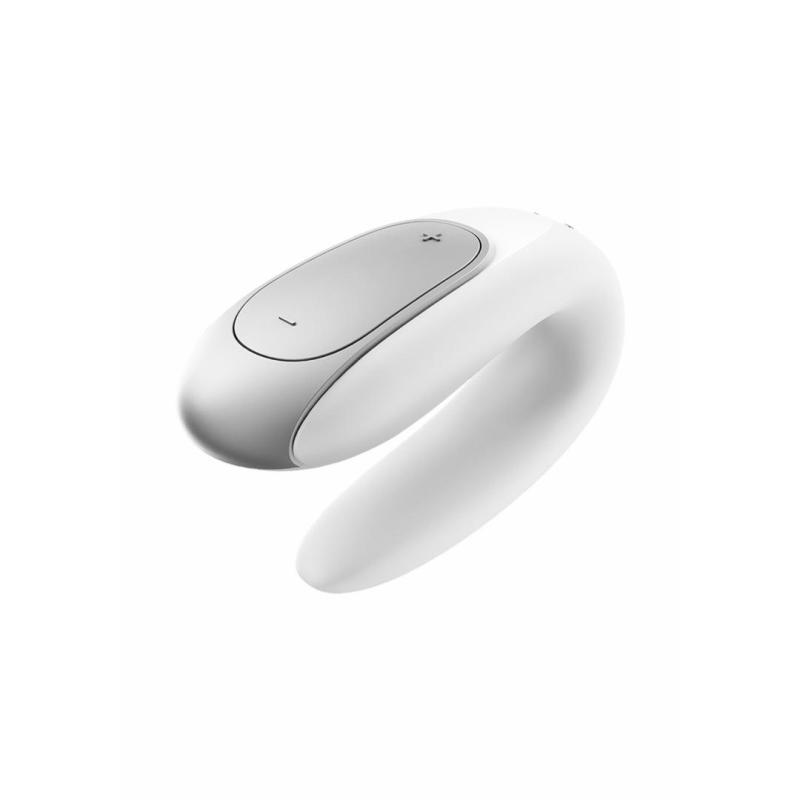 Informazioni sul prodotto 'Double Fun'Il nostro Double Fun stimola potentemente entrambi i partner durante il sesso. La forma a U adatta sia all'interno che all'esterno, garantendo una sensazione seducente per il clitoride, il punto G e il pene. Con l'app abilitata, questo giocattolo high-tech potenziato con il gioco a distanza e molto altro! Cosa pu fare il vibratore per coppie Satisfyer Double Fun? Il Satisfyer Double Fun arricchir la tua vita amorosa con potenti vibrazioni che stimoleranno entrambi sensualmente. Il classico vibratore per coppie a forma di U viene indossato durante l'amore e stimola l'intero pene e il punto G con il suo albero inseribile. Il secondo motore nascosto all'altra estremit del vibratore di coppia e stimola contemporaneamente il clitoride. Il vibratore per coppie realizzato in silicone delicato per il corpo, particolarmente morbido sulla pelle. Il vostro divertimento insieme pu continuare anche sotto la doccia o nella vasca da bagno: grazie alla sua finitura impermeabile (IPX7), il Satisfyer Double Fun il compagno ideale per il piacere bagnato e selvaggio. Se il tuo dispositivo si esaurisce, puoi ricaricare le batterie integrate con il cavo di ricarica USB incluso. Vibratore per coppie con telecomando e controllo tramite app anche intuitivo da controllare: i vari programmi di vibrazione possono essere controllati tramite il pannello di controllo sul vibratore per coppie stesso, tramite il telecomando wireless incluso o tramite l'app Satisfyer Connect. Puoi scoprire ancora pi aggiornamenti per il tuo amore con l'app: puoi creare i tuoi programmi di vibrazione, prendere il controllo del Satisfyer del tuo partner o collegare il tuo account a Spotify e altro ancora - c' molto da scoprire! L'app gratuita e disponibile per Android, iOS e Apple Watch.